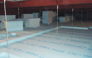 押出法ポリスチレンフォーム(XPS)敷設工事中の状況