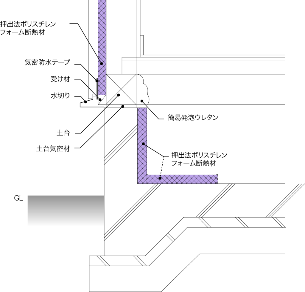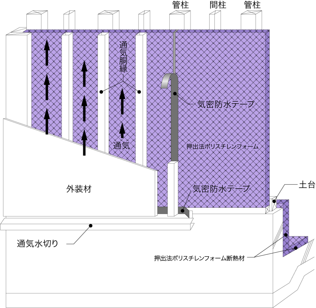 押出法ポリスチレンフォーム(XPS)の木造戸建て具体的施工例