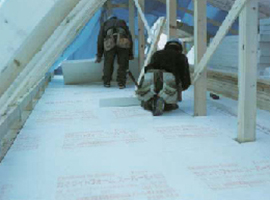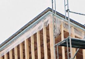 写真b 屋根/壁を先張りフィルムで気密措置例