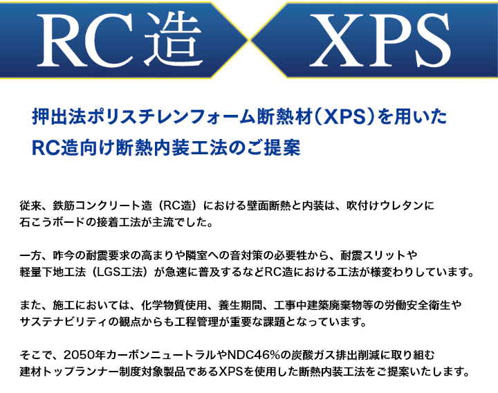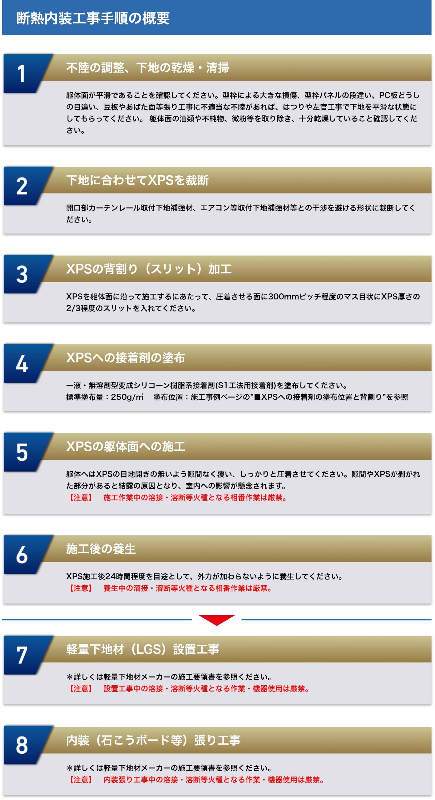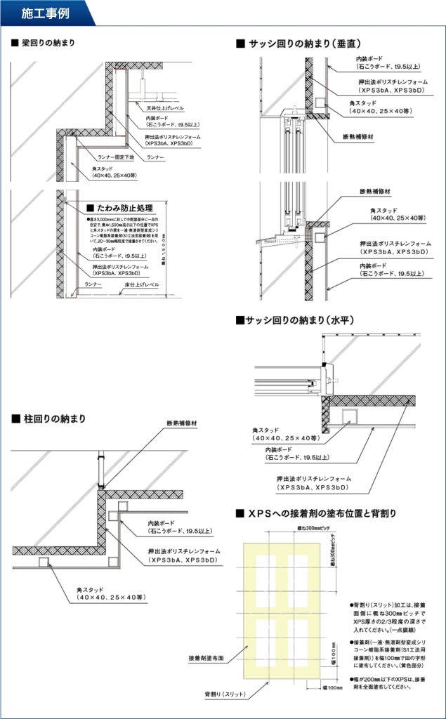 押出法ポリスチレンフォーム(XPS)を圧着張りするこの工法は、吹付けウレタンの場合に発生しがちな