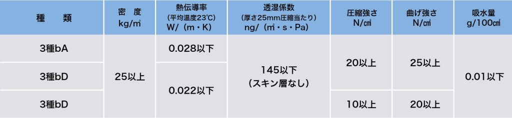 [押出法ポリスチレンフォーム(XPS)の特性](JISA 9521:2022より)